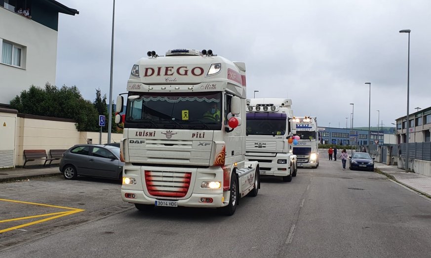 Astillero, lunes 27 de abril de 2020. Más de una decena de camiones recorrieron este pasado sábado las calles de Astillero y Guarnizo para animar a los más pequeños. El recorrido comenzó en Boo donde centenares de vecinos se asomaron a las ventas y balcones para aplaudir a los transportistas que no cesaron de tocar sus bocinas para alegrar a los más pequeños de la casa, que hasta el domingo, habían estado más de 40 días confinando en sus viviendas.