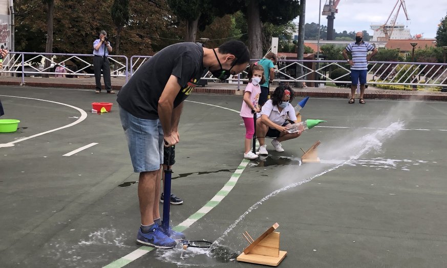 El viernes, 14 de agosto, grandes y pequeños disfrutaron de lo lindo con el taller de lanzamiento de cohetes de agua. El tiempo acompañó en una tarde en la que muchos acabaron empapados poniendo en órbita sus cohetes realizados con material reciclado.