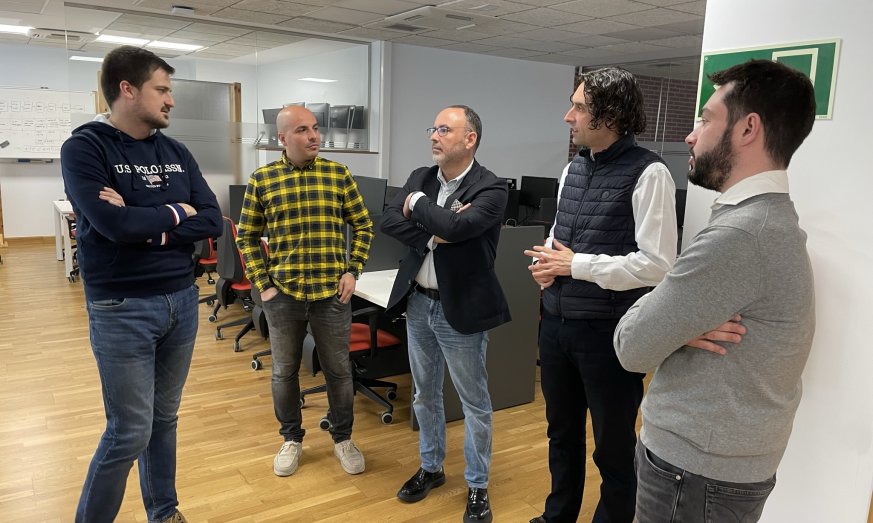 Astillero, 13 de febrero de 2024.  El alcalde de Astillero, Javier Fernández Soberón, y el concejal de Actividad Empresarial, Alejandro Polo, y el concejal de Desarrollo Tecnológico, Alejandro Hoz, han visitado esta mañana las instalaciones de Netboss, ubicada en la Plaza Vista Bahía. Los representantes municipales han mantenido un encuentro con la dirección y los trabajadores de la entidad, que han compartido su actual situación y los proyectos de futuro.