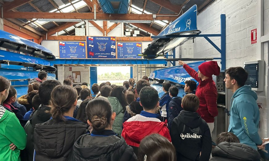 El alumnado conoce de primera mano las instalaciones del club en su preparación para la Bandera Interescolar de Remo